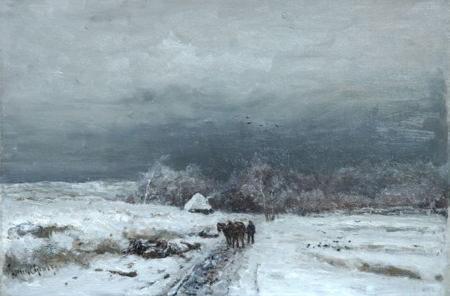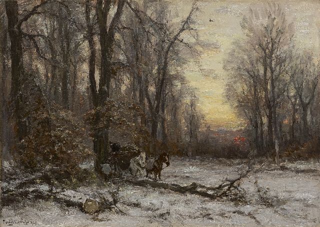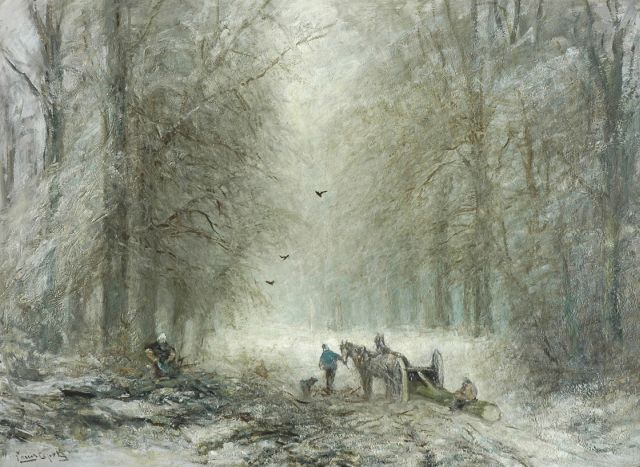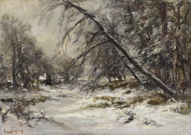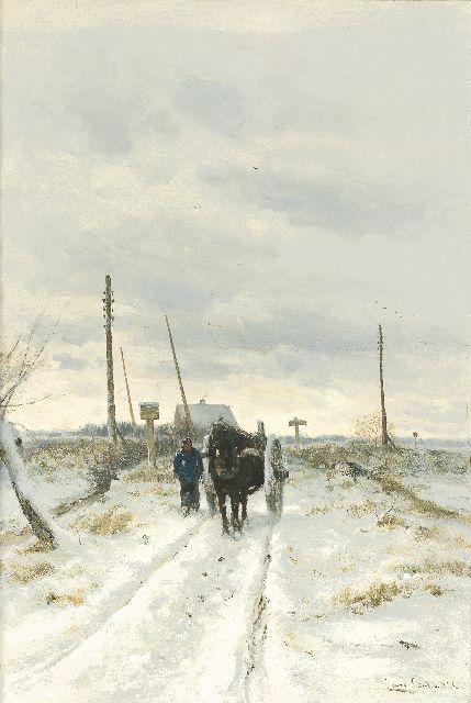 In tegenstelling tot zijn Haagse voorgangers ligt in zijn schilderijen de nadruk niet op de stoffage. De natuur speelt de hoofdrol, in al haar eenzaamheid. Geen vrolijke toneeltjes vol leven en beweging, geen kermis op het ijs. Apol verbeeldt de natuur die voor zichzelf spreekt, indrukwekkend, pittoresk en in haar eenvoud. Zijn winterlandschappen geven het gevoel alsof de toeschouwer zelf een boswandeling aan het maken is. De verse poedersneeuw op de kale takken ademt de ijskoude stilte van een verlaten bos. Vaak beeldt Apol slechts enkele figuren af, een wandelaar met hond of een houtsprokkelaar met paard en wagen. Het pad waarop je loopt is door de mens gevormd, maar straalt nog altijd de rust uit van onaangetaste natuur.