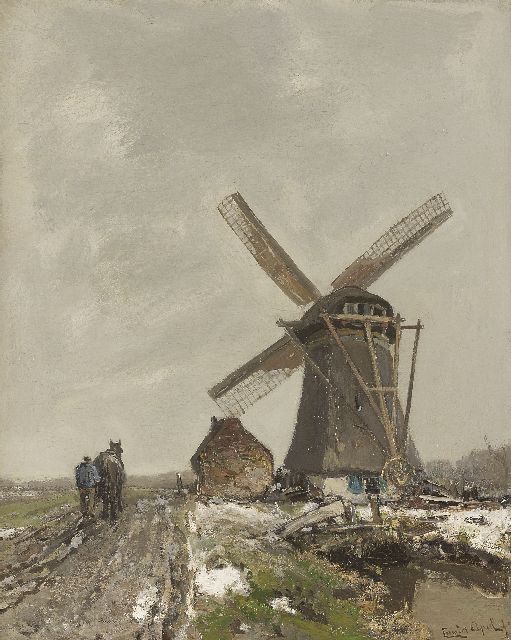 Einde van de winter: boer bij de Laakmolen te Den Haag