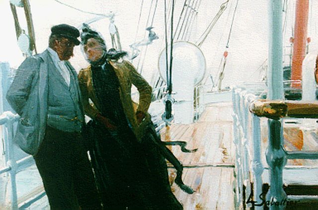 Louis Sabattier behoort tot de schilders die zeer bekend waren in Parijs rond 1900, de periode die wordt aangeduid als de Belle Epoque. Geliefde onderwerpen waren het mondaine Parijse leven op de boulevards en in de theaters, met elegante jonge vrouwen in de hoofdrol. Sabattier kreeg zijn opleiding bij de beroemde genreschilder Jean-Léon Gérome. Daarna ging hij zijn eigen weg. Behalve schilder van vlot opgezette genrevoorstellingen was hij een zeer geliefd portretschilder.