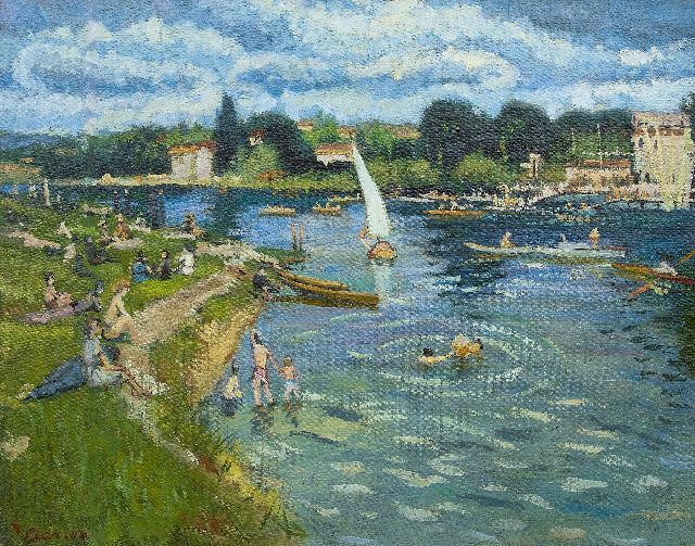 Lucien Adrion was werkzaam als technisch tekenaar en bijna 30 jaar toen hij in 1918 naar Parijs trok. Hij vond er een betrekking als modetekenaar, maar al snel voerde zijn onrustige geest hem verder, naar Londen, München, Frankfurt en Berlijn. Na veel omzwervingen keerde hij terug naar Parijs, waar hij behalve als schilder en tekenaar succes oogstte als lithograaf. In Berlijn had hij een opleiding tot graficus gevolgd bij Hermann Struck, leraar van o.a. Marc Chagall. Adrion werd vooral bekend om zijn impressionistische Parijse straatscènes en mondaine strandgezichten in Normandië en Zuid-Frankrijk.