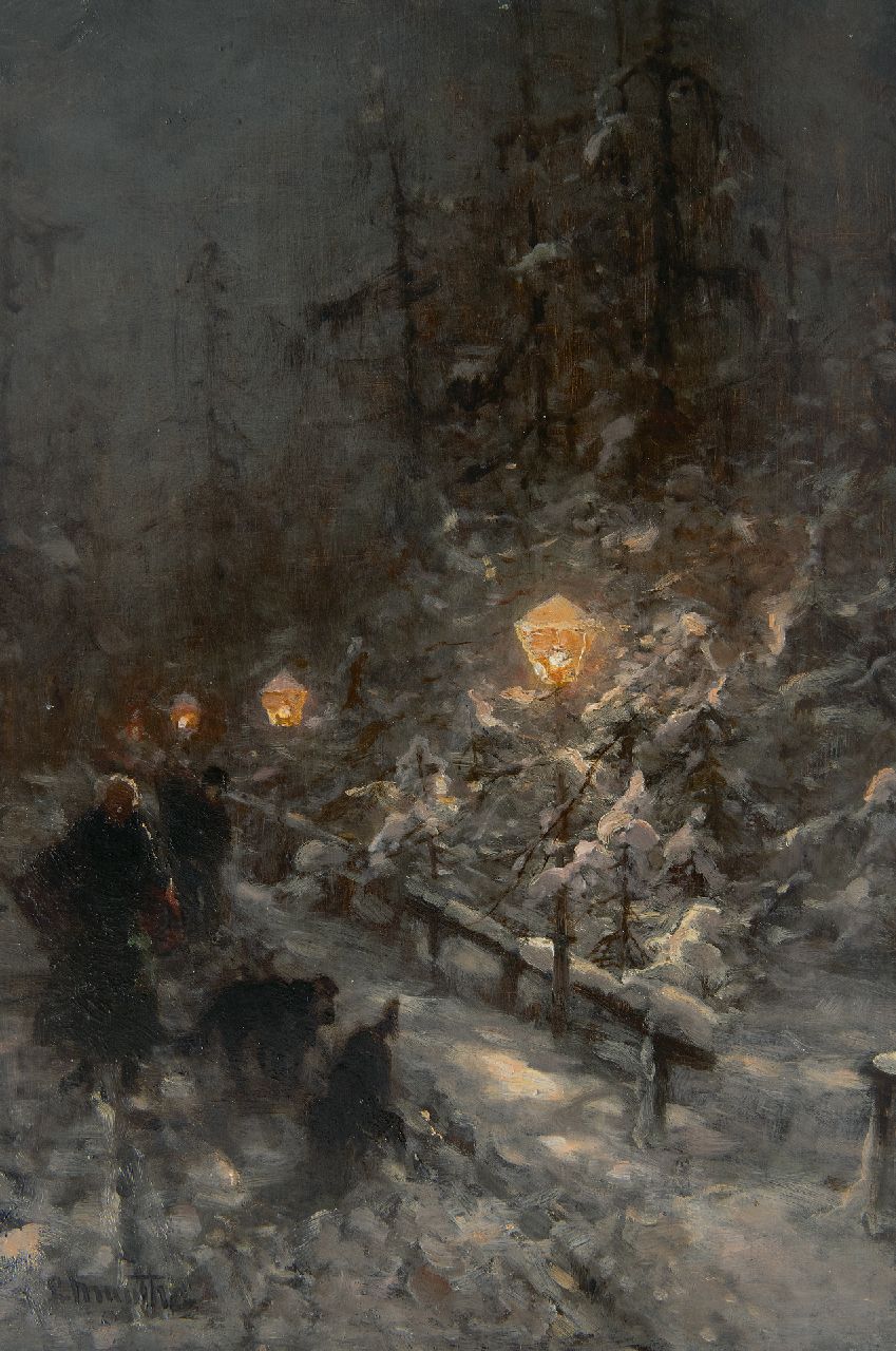 De landschapschilder Ludwig Munthe, vader van G.A.L. ‘Morgenstjerne’ Munthe, kwam in 1861 vanuit de Noorse stad Bergen naar Düsseldorf, om er zijn verdere leven te blijven wonen. Hier volgde hij lessen aan de academie, die hem later, in 1893, benoemde tot professor. Munthe maakte vele Europese studiereizen, onder meer door zijn geboorteland, Duitsland, Frankrijk, Italië en Nederland. Hij verbleef regelmatig aan de Hollandse kust. In Katwijk, rond 1900 een ware kunstenaarskolonie, behoorde hij al vroeg tot de vaste gasten. Op impressionistische wijze schilderde Munthe hier strandgezichten. Daarnaast zijn er stemmige herfst- en winterlandschappen van zijn hand, gekenmerkt door een harmonieus, tonaal coloriet.