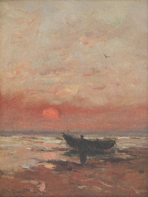 Gerhard Munthe werd in 1875 te Düsseldorf geboren als oudste zoon van een Noorse vader en een Hollandse moeder. Zijn vader volgde een opleiding aan de befaamde academie Düsseldorf, waar hij later ook tot professor werd benoemd. Zoon Gerhard, die het schilderstalent van zijn vader had geërfd, bracht het spoedig tot ‘Meisterschüler’ aan dezelfde academie. Na de dood van zijn vader besloot zijn moeder met haar drie kinderen weer naar Nederland terug te gaan en vestigden ze zich in Den Haag. Daar vond Munthe al snel een atelier. Na zijn huwelijk in 1901 verhuisde hij naar Katwijk, dat hij al goed kende van de familievakanties die het gezin er had doorgebracht. Hij liet er een huis bouwen aan de Noord Boulevard, dat na de geboorte van zijn dochter Sigrid haar naam kreeg. Daar was hij dicht bij het strand en de zee, waar hij elke dag weer de inspiratie opdeed voor de onderwerpen van zijn schilderijen. In 1908 vertrok het gezin naar Den Haag, in het voorjaar van 1912 voor een half jaar naar Zierikzee en in het najaar naar Noordwijk. Uiteindelijk zou het gezin in 1922 in Warmond bij Leiden neerstrijken.