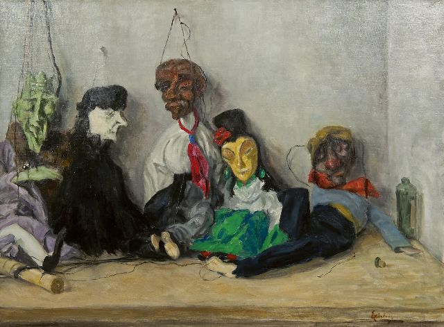 Paulus Casper Erkelens | Stilleven met marionetten, olieverf op doek, 61,6 x 81,8 cm, gesigneerd r.o.