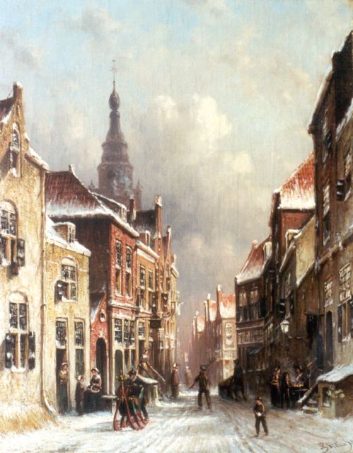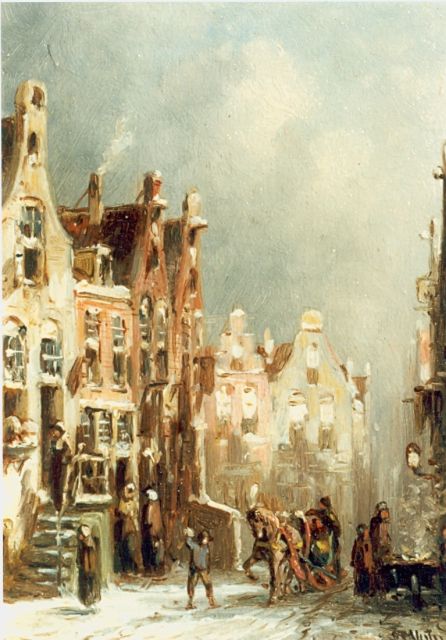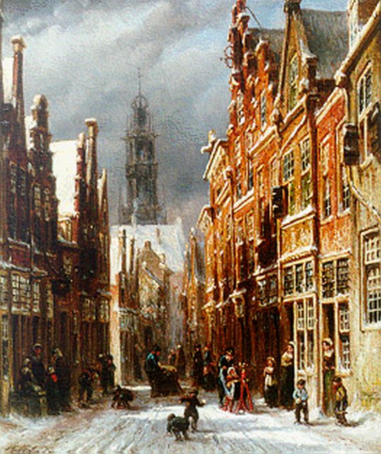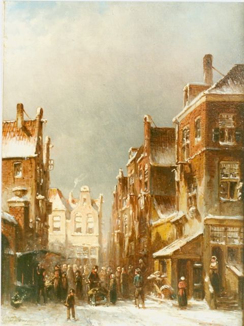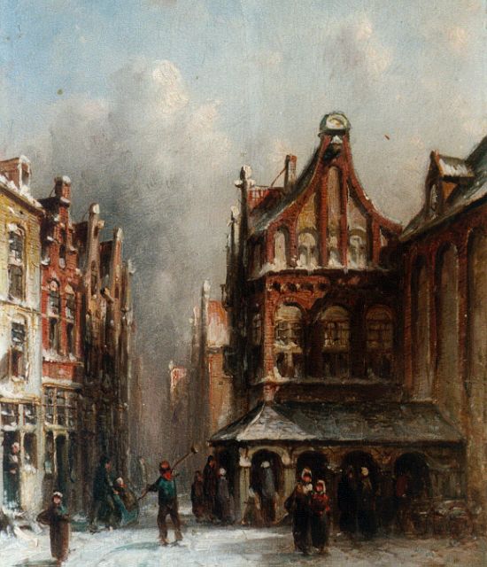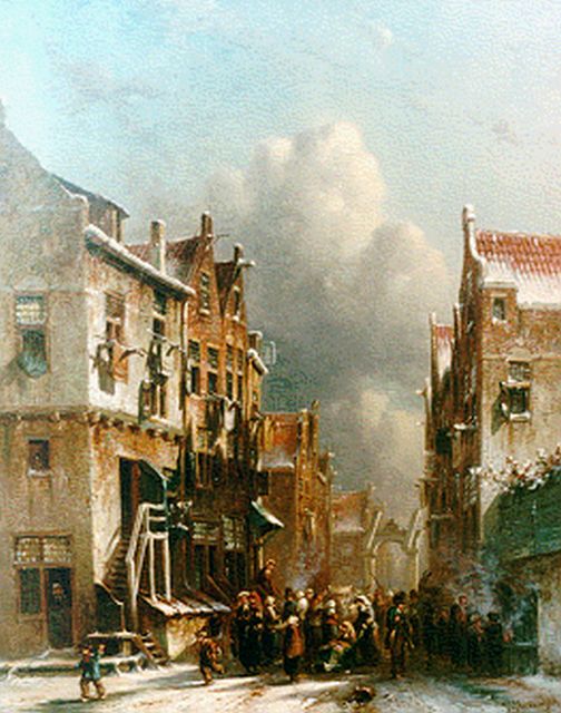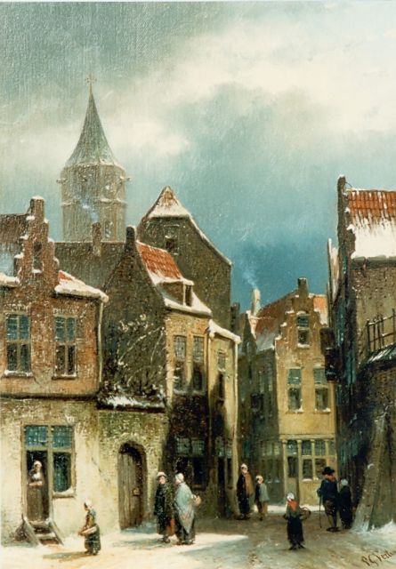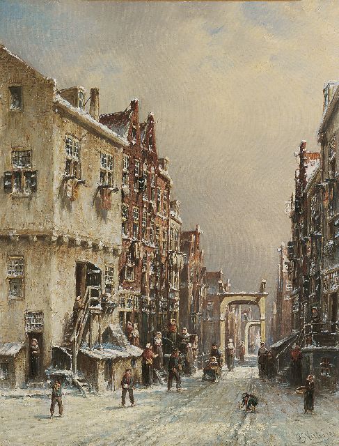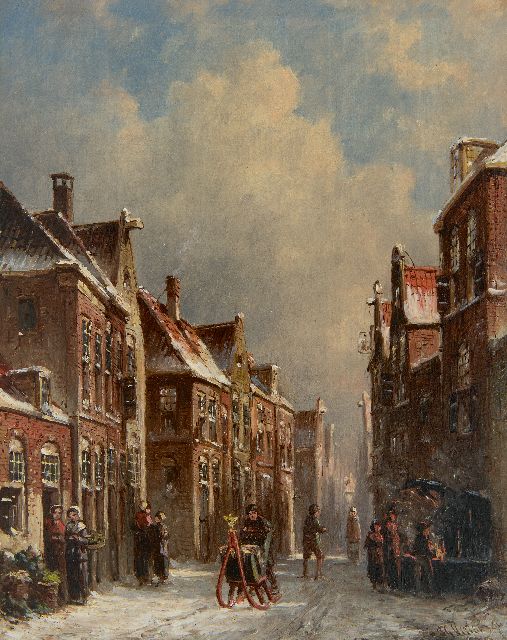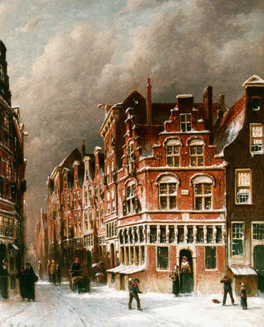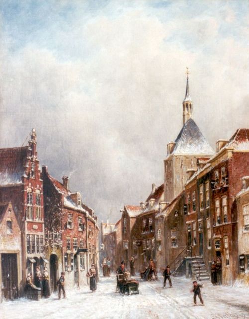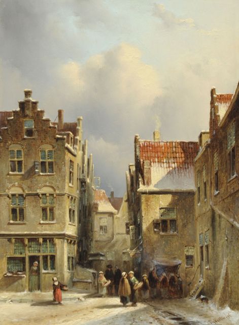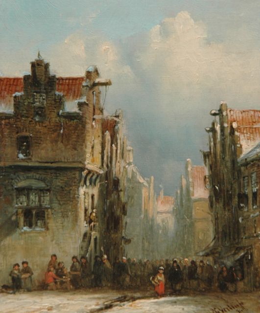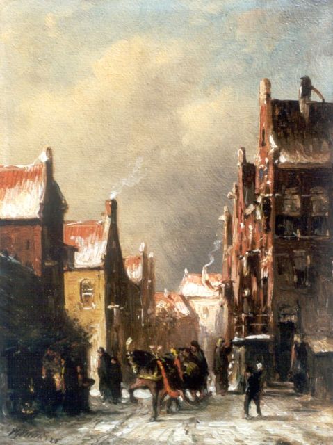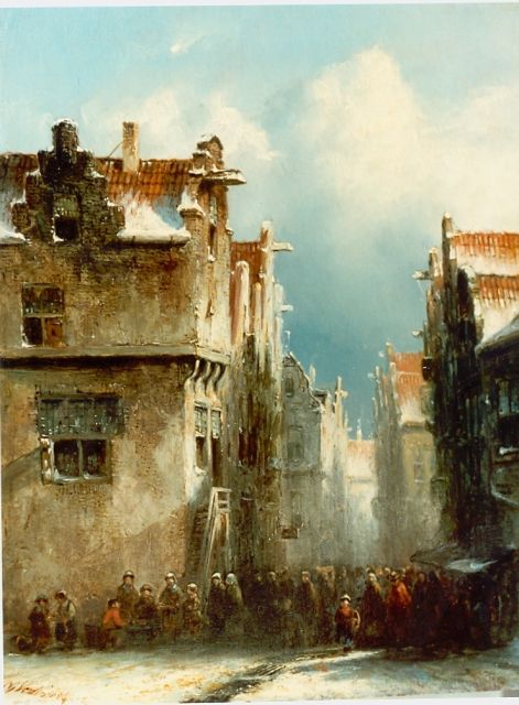 Petrus Gerardus Vertin (1819-1893) kreeg zijn opleiding aan de Akademie voor Beeldende Kunsten van Den Haag, waardoor zijn werk gerekend wordt tot de Haagse romantiek. Hij woonde en werkte gedurende zijn leven hoofdzakelijk in de Hofstad, waar hij zijn inspiratie vond in de pittoreske Hollandse stadsgezichten en straatjes. Hij beeldde ze uit bij zomer en winter, met prachtige lichteffecten en een herkenbaar kleurpalet. Bijzondere aandacht had hij voor de weerkaatsing van het licht op besneeuwde daken, kozijnen en stoepjes.