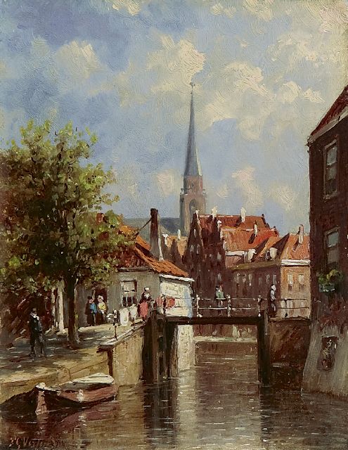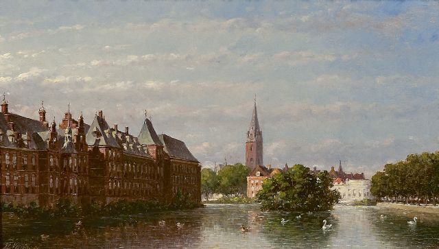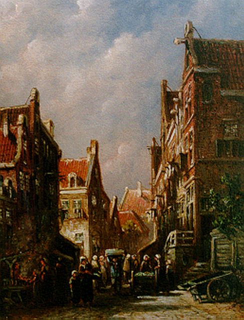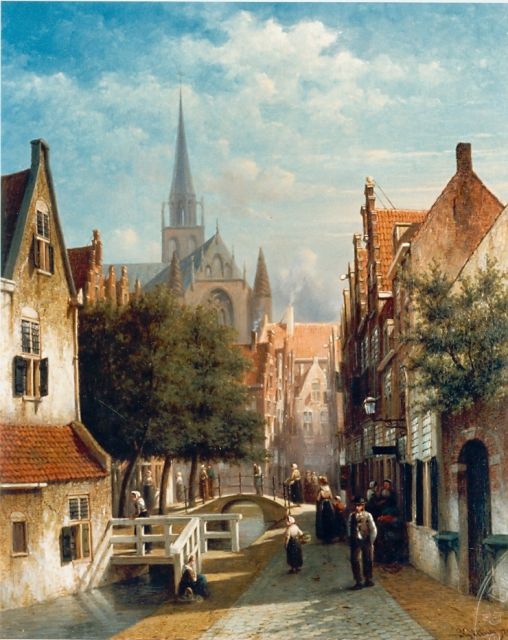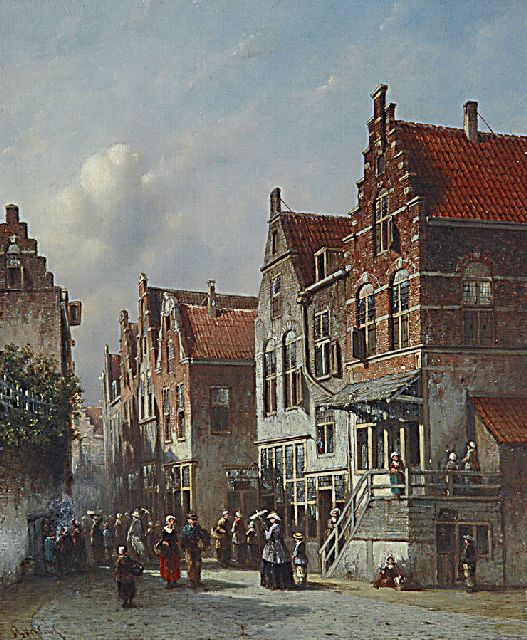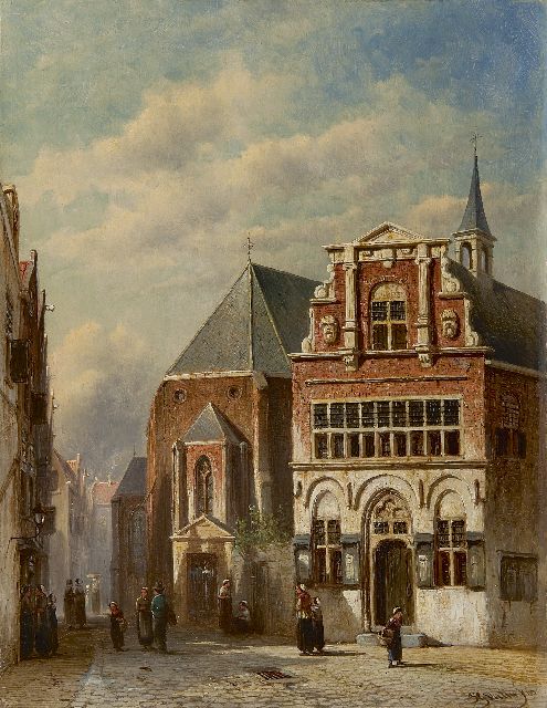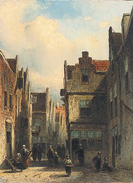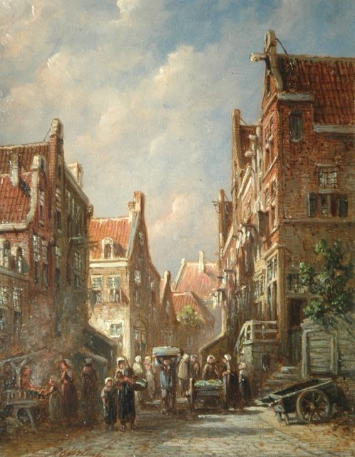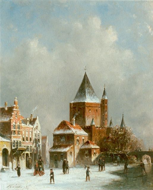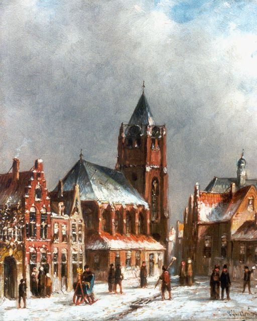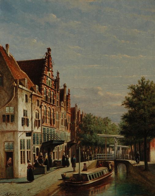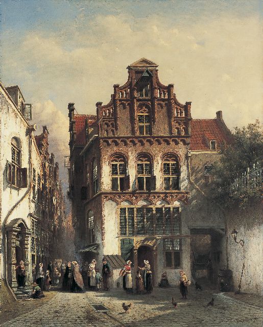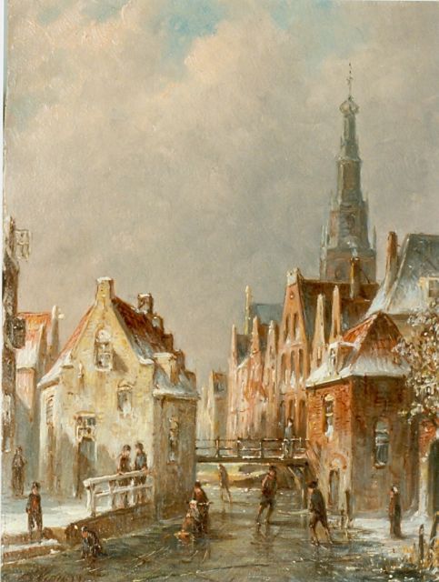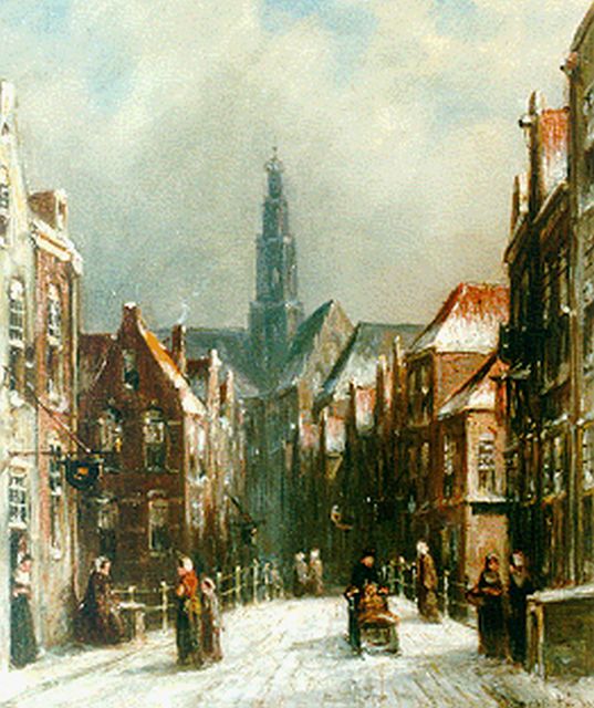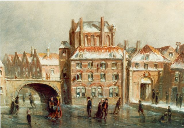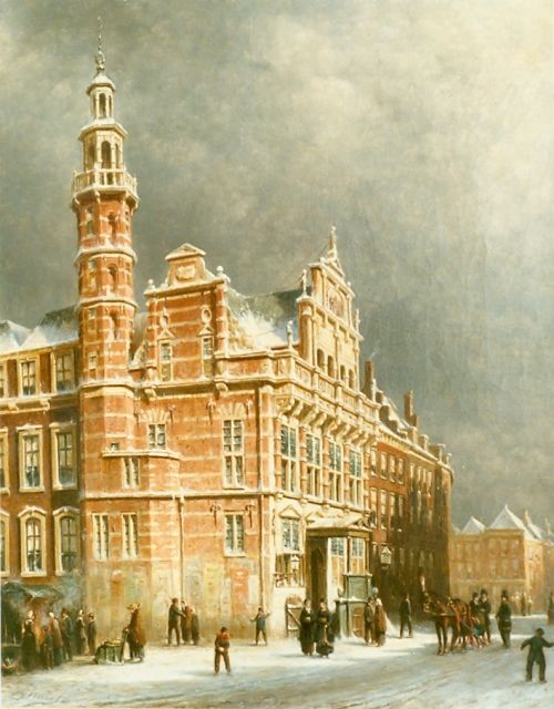 Petrus Gerardus Vertin (1819-1893) kreeg zijn opleiding aan de Akademie voor Beeldende Kunsten van Den Haag, waardoor zijn werk gerekend wordt tot de Haagse romantiek. Hij woonde en werkte gedurende zijn leven hoofdzakelijk in de Hofstad, waar hij zijn inspiratie vond in de pittoreske Hollandse stadsgezichten en straatjes. Hij beeldde ze uit bij zomer en winter, met prachtige lichteffecten en een herkenbaar kleurpalet. Bijzondere aandacht had hij voor de weerkaatsing van het licht op besneeuwde daken, kozijnen en stoepjes.