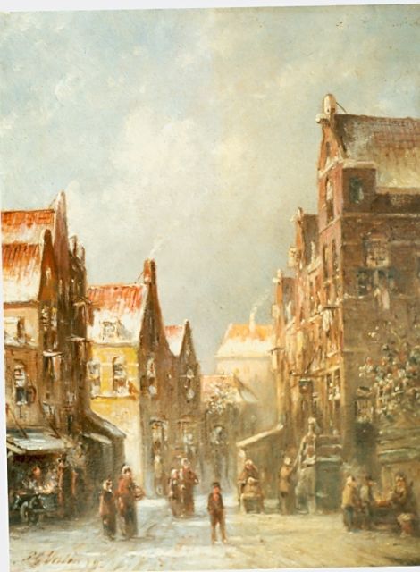 Petrus Gerardus Vertin (1819-1893) kreeg zijn opleiding aan de Akademie voor Beeldende Kunsten van Den Haag, waardoor zijn werk gerekend wordt tot de Haagse romantiek. Hij woonde en werkte gedurende zijn leven hoofdzakelijk in de Hofstad, waar hij zijn inspiratie vond in de pittoreske Hollandse stadsgezichten en straatjes. Hij beeldde ze uit bij zomer en winter, met prachtige lichteffecten en een herkenbaar kleurpalet. Bijzondere aandacht had hij voor de weerkaatsing van het licht op besneeuwde daken, kozijnen en stoepjes.