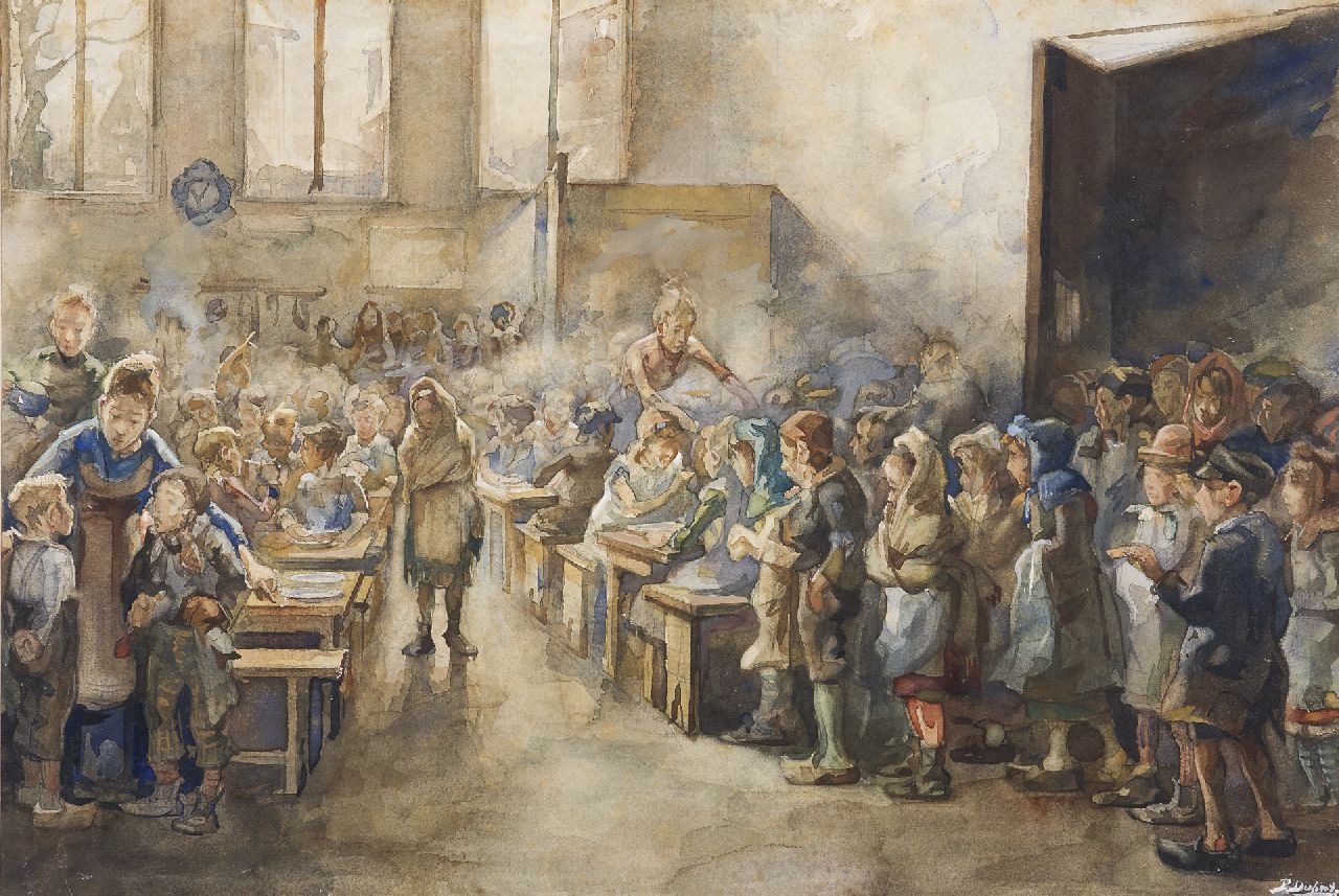 Pieter Dupont | Het uitdelen van de maaltijd, aquarel op papier, 37,0 x 54,9 cm, gesigneerd r.o.