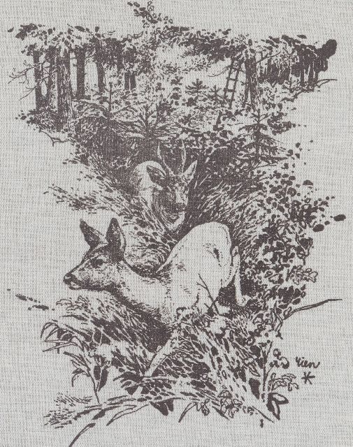 Rien Poortvliet | Twee herten, druk op doek, 32,0 x 25,5 cm, gesigneerd r.o.