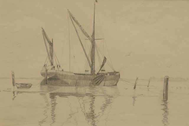 Robert Trenaman Back | Afgemeerde 'Thames barge', potlood op papier, 25,3 x 35,7 cm, gesigneerd verso