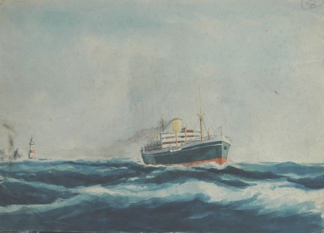 Robert Trenaman Back | Het stoomschip Lord Nelson op volle zee, aquarel op papier, 24,4 x 35,6 cm, gesigneerd r.o. en gedateerd 1939