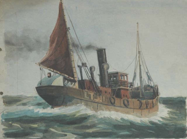Robert Trenaman Back | Drifter op zee, aquarel op papier, 27,5 x 37,7 cm, gesigneerd r.o.