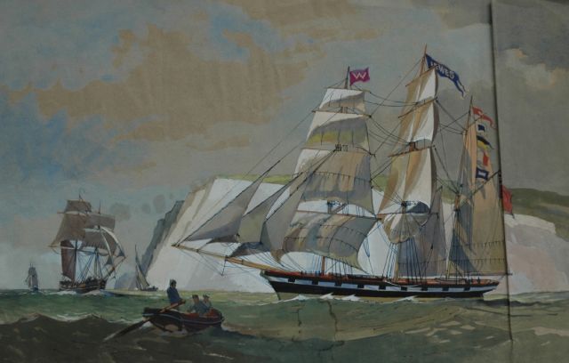 Robert Trenaman Back | Zeilende bark voor de Engelse kust, pen, inkt en aquarel op papier, 32,0 x 50,6 cm