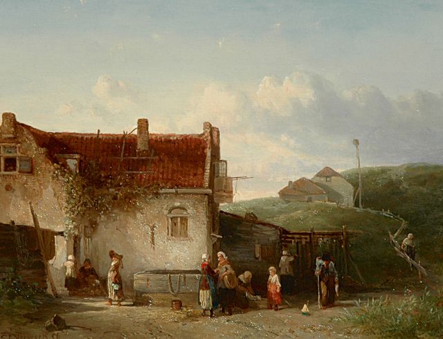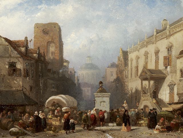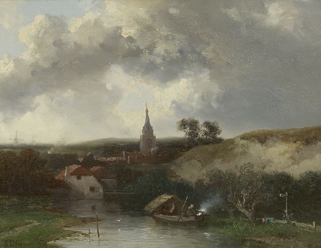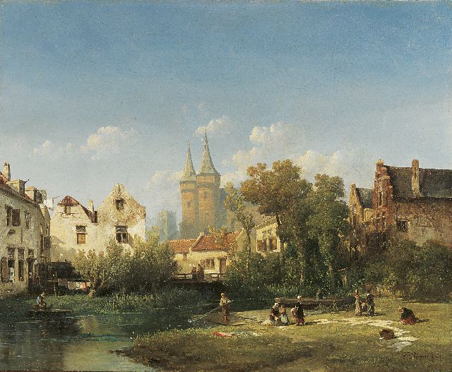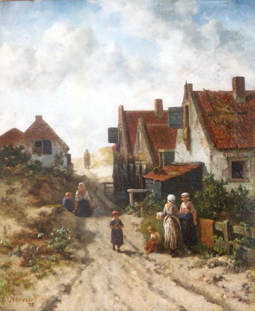 Salomon Verveer woonde en werkte in Den Haag en was, als gewaardeerd lid van Pulchri Studio, een van de centrale figuren van het Haagse kunstleven. Zowel Willem II als Willem III kochten tekeningen en schilderijen van hem. Verveers oeuvre omvat rond 1840 vooral waterrijke stads- en dorpsgezichten, die in hun romantische sfeer en helder coloriet invloed verraden van zijn jong overleden vriend W.J.J. Nuijen. Daarna schilderde hij met een natuurlijker lichtval en zonder romantische motieven als ruïnes en spiegelende rivieren. Vooral door de levendige stoffage waren zijn schilderijen bij tijdgenoten zeer geliefd. Daarom stoffeerde hij ook regelmatig de stads- of zeegezichten van zijn Haagse en Amsterdamse schildervrienden. Zijn belangrijkste leerling was Jan Weissenbruch.