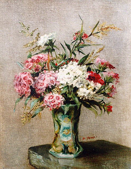 Sara Hense (ook geschreven als Sara Henze) specialiseerde zich in het schilderen van bloemen, net als haar beroemde leermeesteres Margaretha Roosenboom. Zij bracht daarin echter een grotere variatie aan: tulpen, azalea's, anjers en chrysanten en tal van andere bloemen werden door haar verbeeld. Het werk van Sara Hense oogstte bewondering om de natuurlijke schikking van de bloemen en de prachtige kleuren en lichtval. Sara Hense werd in 1857 geboren in Zeist en woonde en werkte daar het grootste deel van haar leven. Zij kreeg haar opleiding in het buitenland, vanaf 1879 respectievelijk in Duitsland, Genève en Oxford. In Nederland was het voor vrouwen toen nog vrijwel onmogelijk om als kunstenaar opgeleid te worden.