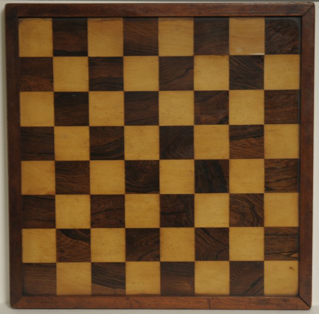Schaakbord van rozen- en palmhout met mahoniehouten rand