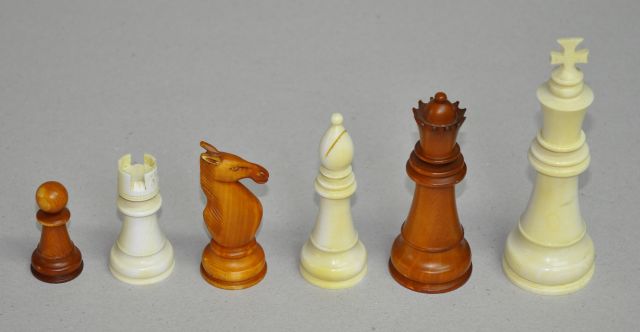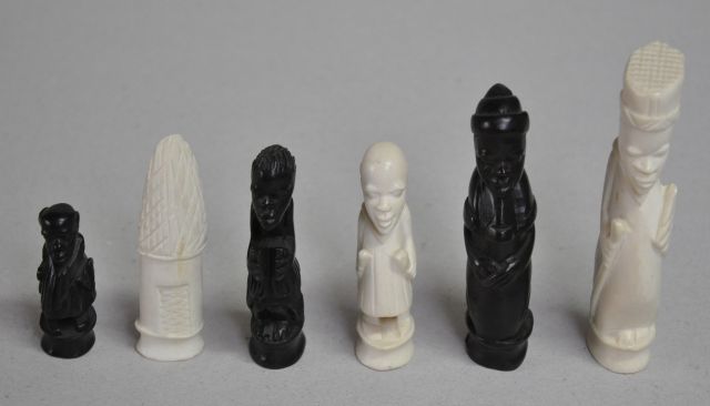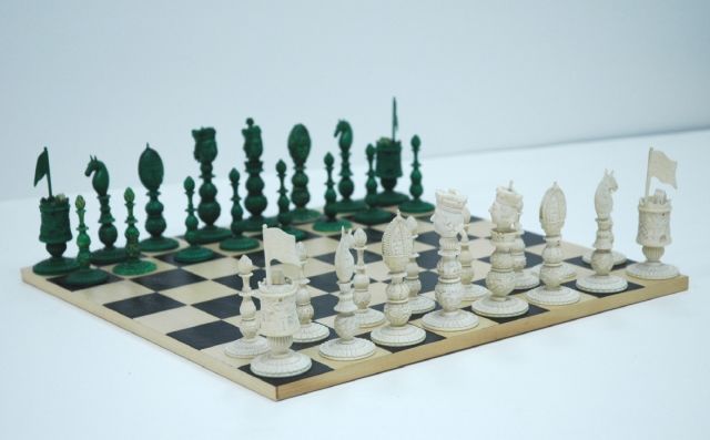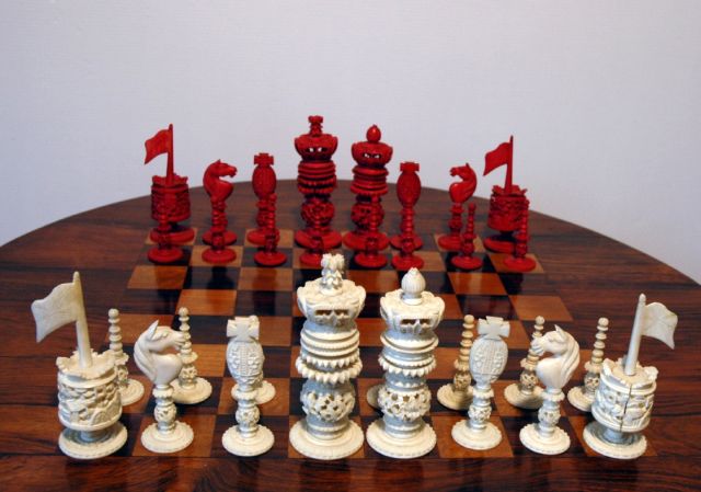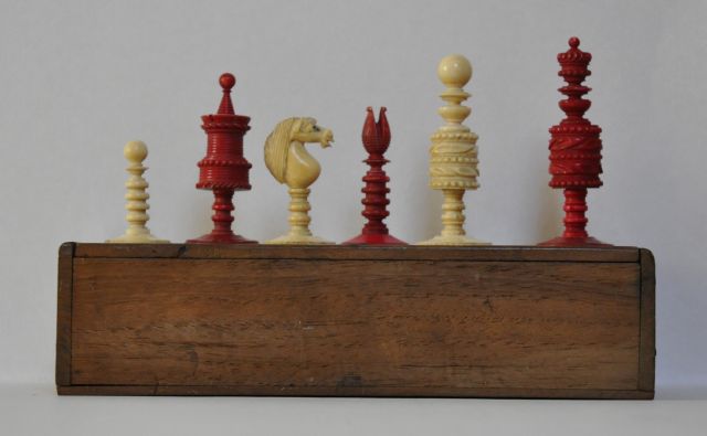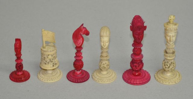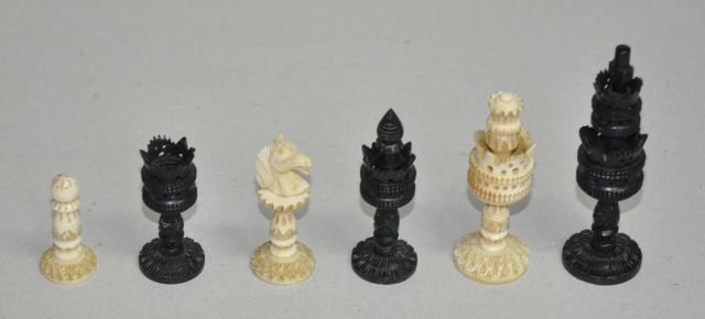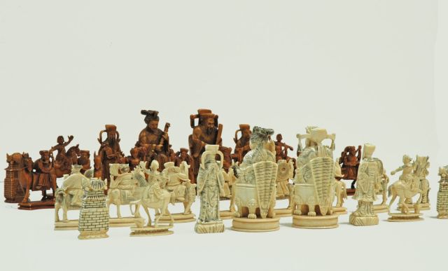 Schaakset 'Birma-stijl' (Chinees, Kanton) in originele houten doos,