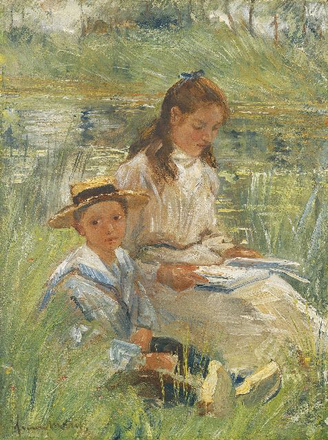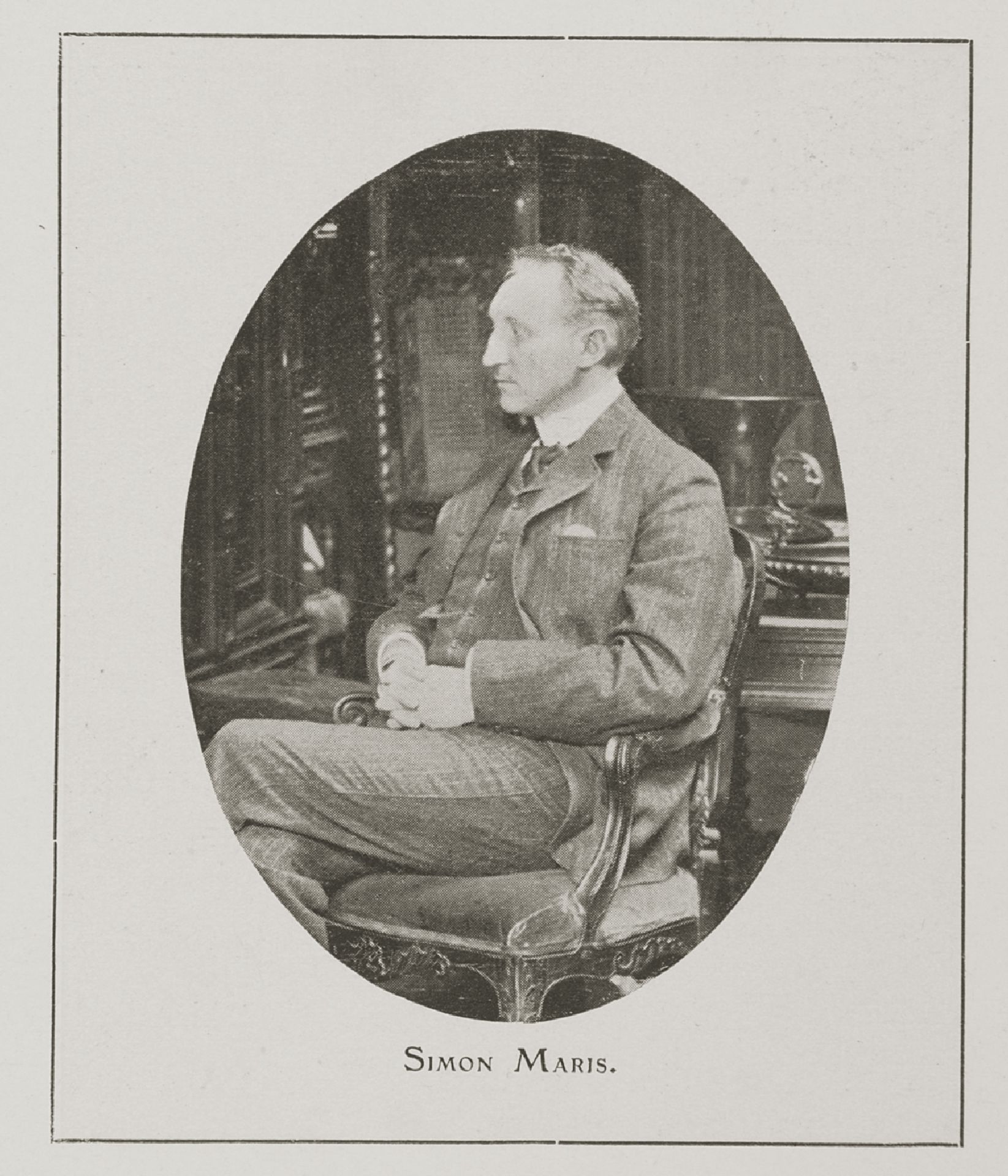 Simon Maris (1873-1935), oudste zoon van Willem Maris, behoorde tot de tweede generatie Maris-kunstenaars. Onder het toeziend oog van zijn vader begon hij al jong met het schilderen van landschappen en het leek er aanvankelijk op dat hij in diens voetsporen zou treden. Maar het schilderen van realistische landschappen trok hem niet. Uiteindelijk zou hij zich specialiseren in figuurstukken en portretten in een licht en kleurig palet. Simon bezocht de academie in Den Haag en schreef zich in 1895 in op de Koninklijke Academie voor Schone Kunsten van Antwerpen. Hiermee zette hij een familietraditie voort: zijn ooms Matthijs en Jacob studeerden ook enkele jaren in Antwerpen. Het moet voor Simon een prettige tijd geweest zijn op de Antwerpse Academie. Als zoon van een gevierd schilder gingen vele deuren voor hem open en het ontbrak hem bovendien niet aan geld. Door het lichte, kleurige palet, resultaat van een studietijd aan de Antwerpse academie en daaropvolgende studiereizen naar Frankrijk en Italië, onderscheidt het werk van Simon Maris zich duidelijk van dat van zijn vader Willem Maris. Hij schilderde bij voorkeur figuren en portretten, waarvoor na 1908 vaak zijn vrouw Cornelia den Breejen en kinderen Mies en Thijs model stonden. In het Amsterdamse kunstleven nam hij een vooraanstaande plaats in. Vlak na 1900 schilderde en schetste hij met Mondriaan en Arnold Gorter langs het Gein.