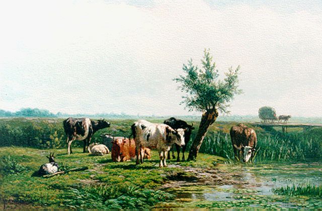 Als boerenzoon begon Simon van den Berg relatief laat aan een schilderscarrière. Pas na een tweejarige leertijd bij de beroemde P.G. van Os ontwikkelde hij zich in de jaren veertig van de 19e eeuw tot een van de belangrijkste veeschilders van de Hollandse Romantiek. Soms stoffeerde hij ook landschappen van tijdgenoten. In 1854 werd de bijzonder veelzijdige schilder benoemd tot directeur van het Mauritshuis in Den Haag.