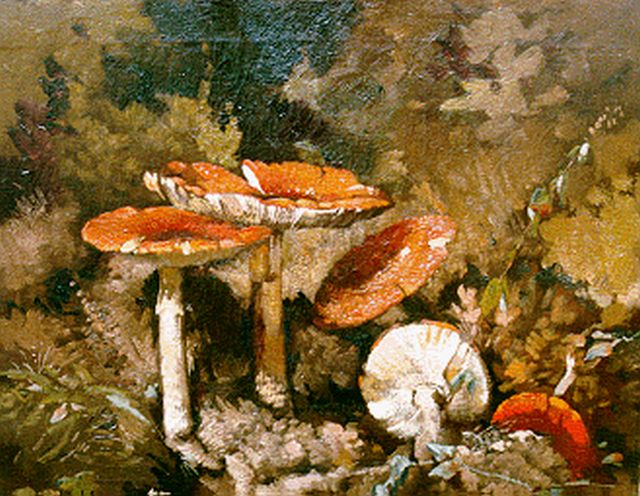 Theo Goedvriend | Rode paddestoelen, olieverf op doek, 85,6 x 55,6 cm, gesigneerd l.o.
