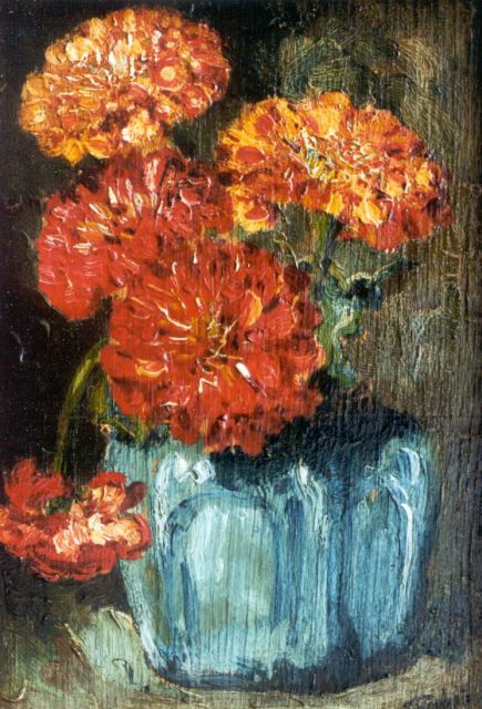 Theo Goedvriend | Stilleven van bloemen in een gemberpotje, olieverf op paneel, 23,8 x 16,0 cm, gesigneerd r.o.