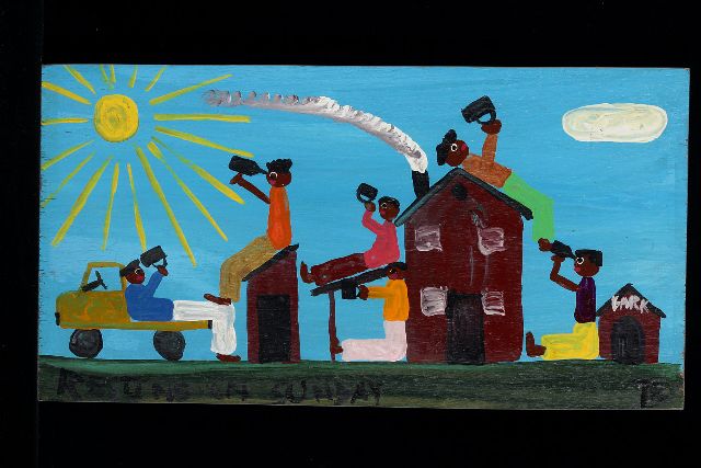De Afrikaans-Amerikaanse kunstenaar Tim Brown (1923) schildert in een ongeschoolde, naïeve stijl zijn jeugd: familieleden, vrienden, vissen op de rivier, werken op het land, zijn hond Bark. Als kind, op de boerderij van zijn ouders, schilderde hij op oude planken en afvalhout met verf die zijn vader gebruikte om het huis mee op te knappen. In de jaren 50 begon hij met het weergeven van jeugdherinneringen, naar eigen zeggen om zijn twee kinderen iets te laten zien van zijn eigen jeugd. De schilder leidt een eenvoudig, teruggetrokken leven op zijn boerderij in Mississippi, de plaats waar hij ook geboren werd. Verder zijn er geen biografische gegevens van hem bekend. Brown had eerder tentoonstellingen in o.a. de Kunsthal en Museum Belvedère en zijn werk is opgenomen in de collecties van Museum Charlotte Zander in Bönnigheim, Museum Dr. Guislain in Gent, Museum der Stadt Ratingen en Museum Belvedère.