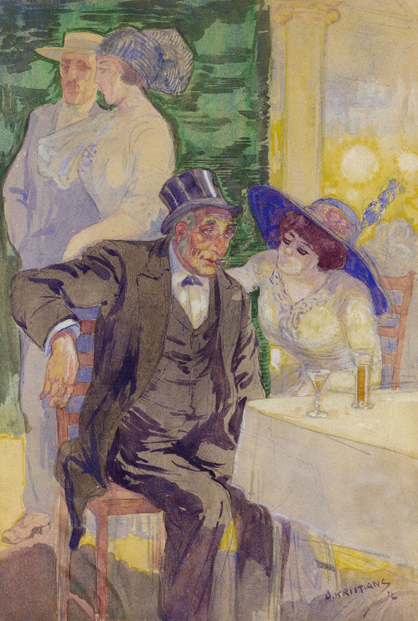 De Amsterdamse schilder Tonny Kristians verruilde in 1913 Amsterdam voor Parijs, toen het mekka van de schilderkunst. Tot 1921 woonde hij met zijn familie in het bruisende Montmartre, waar hij bevriend raakte met kunstenaars als Maurice Utrillo en Odilon Redon. Het Parijse straatleven, de bars en cabarets van Montparnasse maar ook de mondaine uitgaansgelegenheden van de stad leveren inspiratie voor tal van stadsgezichten, figuur- en genrevoorstellingen. Kristians was naast een bekend schilder ook etser, graficus en boekbandontwerper. Tevens was hij in 1912 een van de oprichters van ‘De Onafhankelijken’.
