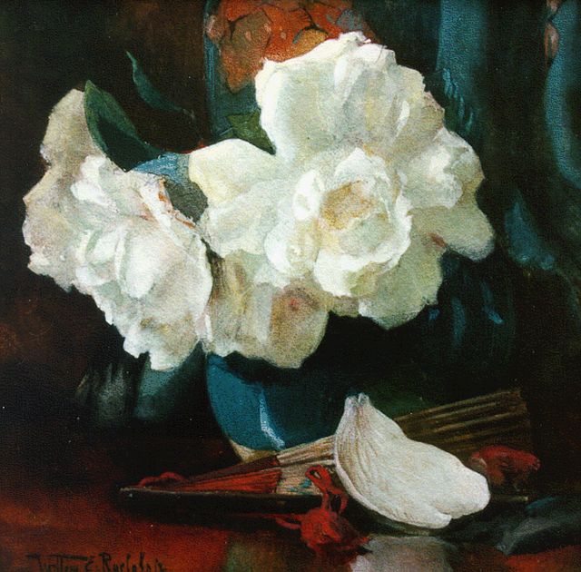 Willem Elisa Roelofs jr. | Stilleven met witte rozen, aquarel op papier, 24,9 x 25,5 cm, gesigneerd l.o.