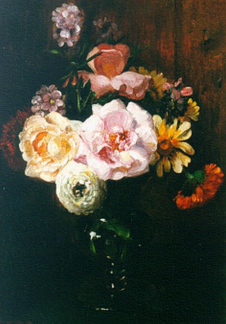 Willem Elisa Roelofs jr. | Bloemstilleven, olieverf op paneel, 10,0 x 8,0 cm, gesigneerd l.o. en gedateerd ca. 1923