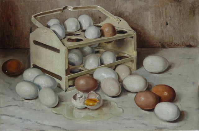 Willem Elisa Roelofs jr. | Eierrekje, olieverf op schildersboard, 30,1 x 44,9 cm, gesigneerd r.m.