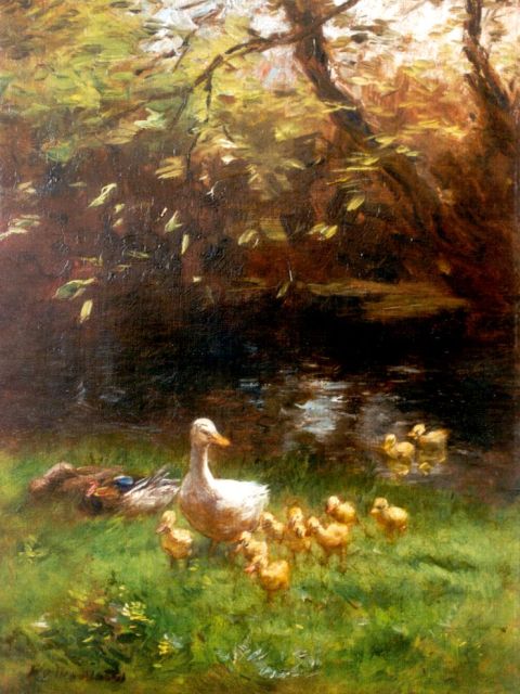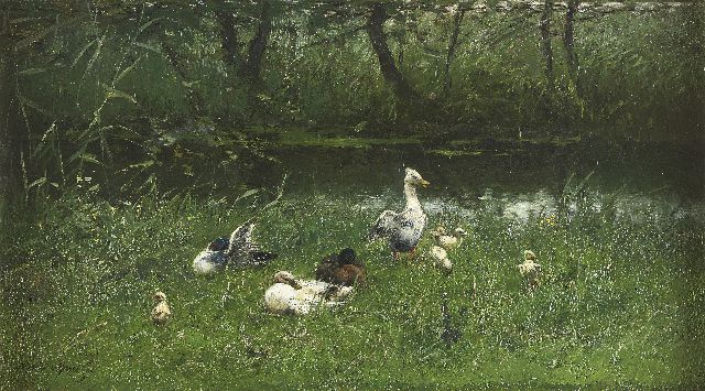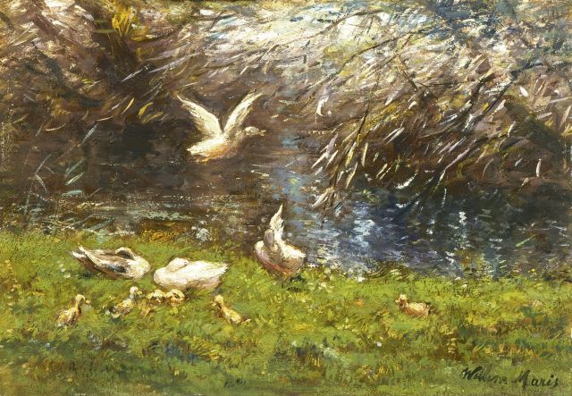 Willem Maris groeide op in een gezin waar de kunsten zeer werden gestimuleerd. Hij was de jongste van de drie Maris-broers en ontving zijn eerste tekenonderricht van zijn oudere broers Jacob en Matthijs, met wie hij een atelier deelde in Den Haag. Daarnaast bezocht hij de avondklas van de Haagse Academie en kreeg hij raadgevingen van de dierenschilder Pieter Stortenbeker. In 1862 begon Willem als zelfstandig schilder en maakte zijn debuut op de Tentoonstelling van Levende Meesters in Rotterdam. In datzelfde jaar verkocht hij zijn eerste schilderij een reisde naar Oosterbeek, waar hij met Anton Mauve bevriend raakte. Mauve, die het liefst in weer en wind buiten zat te schilderen, probeerde Willem dikwijls over te halen mee te gaan. Maar Willem voelde zich toch het meest op zijn gemak thuis in zijn atelier, waar hij de schetsen die hij buiten maakte uitwerkte. Zijn leven lang woonde hij in de omgeving van Den Haag en liet, toen hij in Rijswijk woonde, een eendenvijver in zijn tuin aanleggen. Zo hoefde hij niet ver van huis om de eenden en hun kroost vast te leggen.