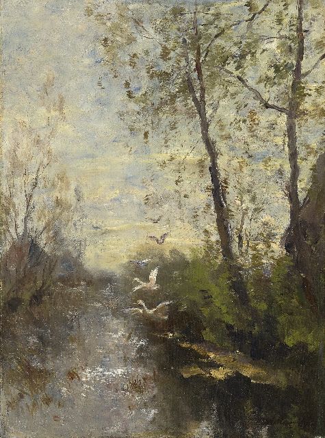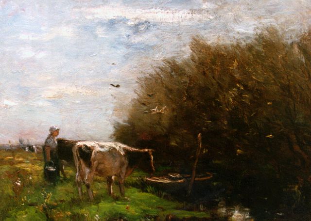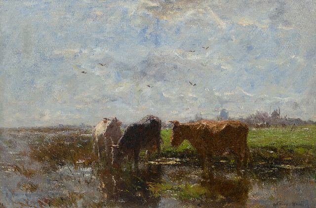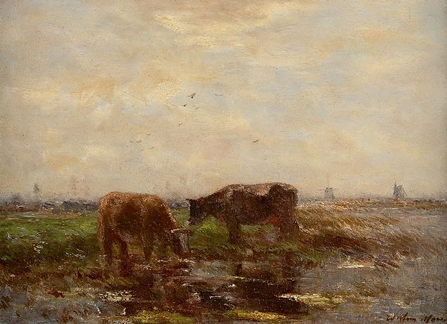 Willem Maris (1844-1910) schilderde het liefst waterrijke landschappen met eenden of koeien in sompige weiden aan een vaart of sloot. Daarbij ging het Maris vooral om het vastleggen van de manier waarop het licht zijn onderwerpen beroerde. 'Ik schilder geen koeien, maar lichteffecten', zei hij eens over zijn werk. Om deze reden wordt hij wel eens de 'impressionist' van de Haagse School genoemd.