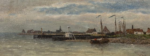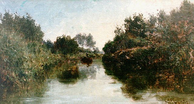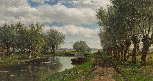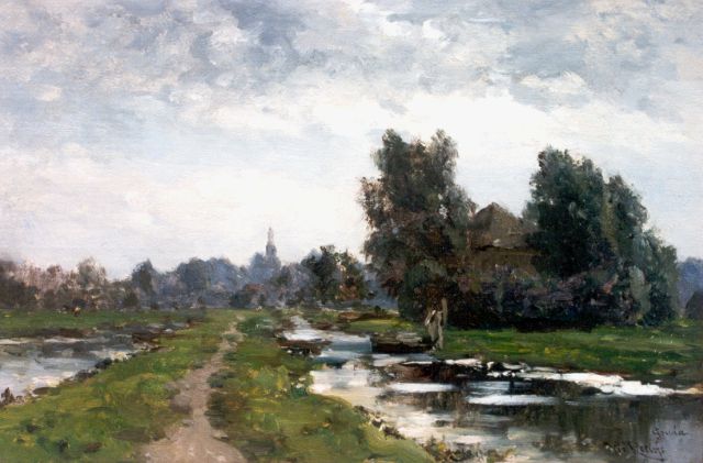Dorpsvaart met vrouw aan de was (mogelijk Edam)
