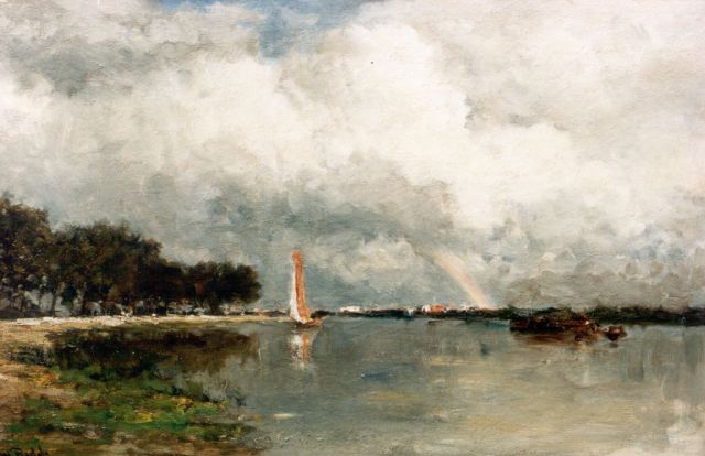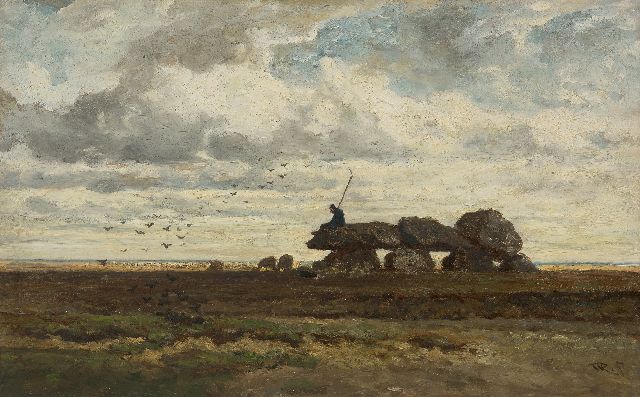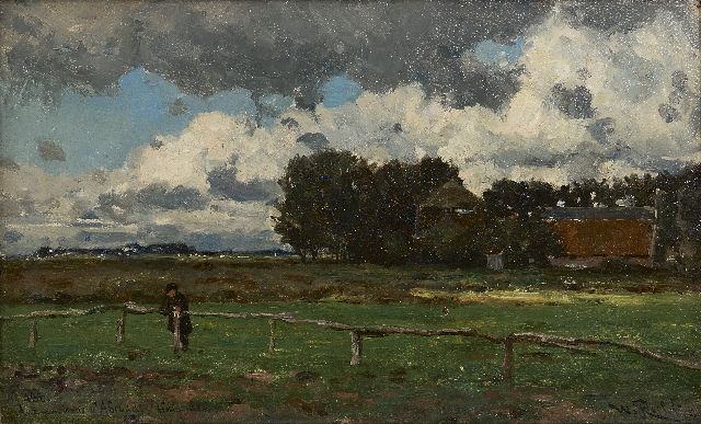 Zocht Roelofs eerst nog zijn inspiratie in de omgeving van Brussel, vanaf 1856 reisde hij daarvoor jaarlijks naar Nederland. Net zoals zijn collega’s van de Haagse School interesseerde hij zich voor het landschap dat tot dan toe in ons land als te gewoontjes werd beschouwd: het polderland met molens, drassige weiden met koeien onder zware wolkenluchten, heidevelden en rivieren. Eerst trok hij naar Drenthe, later zocht hij idyllische plekjes op langs het Gein, rond de Nieuwkoopse Plassen en bij Loosdrecht. Het ging hem daarbij om het naar de werkelijkheid vastleggen van de stemming en het licht van het moment, die op bewolkte dagen voortdurend veranderden. Zijn indrukken verzamelde hij zorgvuldig in schetsen en olieverfstudies op doek, die hij gebruikte bij de uitwerking van het schilderij in zijn atelier. Het is bekend dat Roelofs hiervan heel veel maakte. Een goede buitenstudie moest, zoals Roelofs het noemde, ‘de adem der natuur’ in zich hebben en diende als geheugensteun bij het maken van het schilderij. Vaak werden deze olieverfstudies door hem ook voorzien van opschriften met de vermelding van plaats of maand en soms een nummer, dat correspondeerde met andere olieverfschetsen uit dezelfe streek. De waardering van tijdgenoten voor de directheid van deze landschappen blijkt wel uit het feit dat ze regelmatig als zelfstandige kunstwerken werden verkocht.