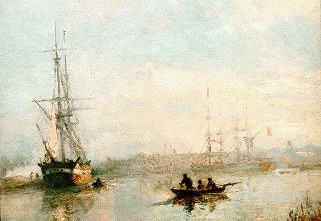 Willem van Deventer | Havengezicht, olieverf op schildersboard, 33,4 x 43,4 cm