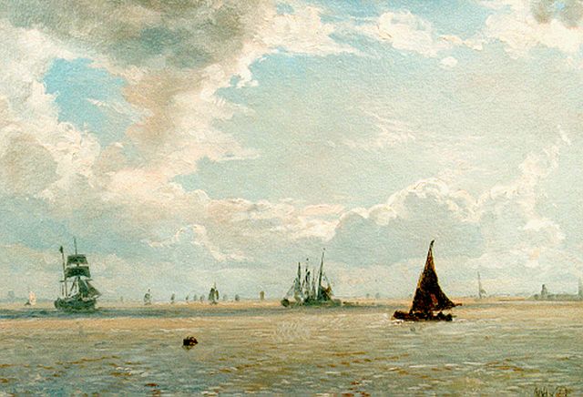 Willem van Deventer | Schepen op kalme zee, aquarel op papier, 35,6 x 58,5 cm, gesigneerd l.o.