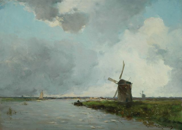 Willem Weissenbruch | Winderig weer: molen in een polderlandschap, olieverf op doek, 40,1 x 56,4 cm, gesigneerd r.o.