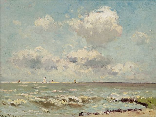 Willem Weissenbruch | Zeilschepen op zee, olieverf op doek op board, 23,3 x 32,0 cm, gesigneerd l.o.
