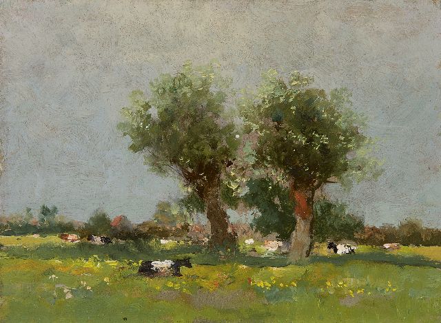 Willem Weissenbruch | Koeien in een landschap, olieverf op board, 17,8 x 23,9 cm