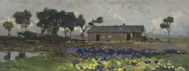 Willem Weissenbruch | Landschap met koolveld, olieverf op doek, 21,5 x 56,4 cm, gesigneerd l.o.