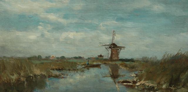 Willem Weissenbruch | Windmolen in de polder, olieverf op doek op paneel, 16,0 x 30,7 cm, gesigneerd l.o. en gedateerd 1900