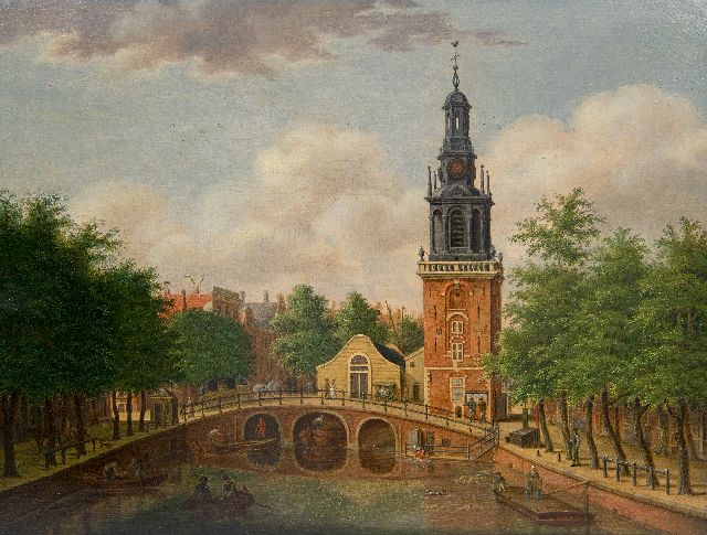 Willem Zijderveld | De Amsterdamse Jan Roodenpoortstoren over het Singel (pendant van 23142), olieverf op paneel, 25,6 x 33,4 cm, gesigneerd l.o. (vaag)