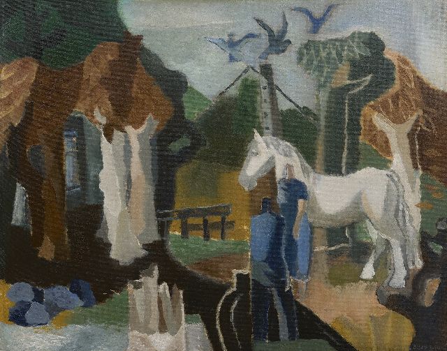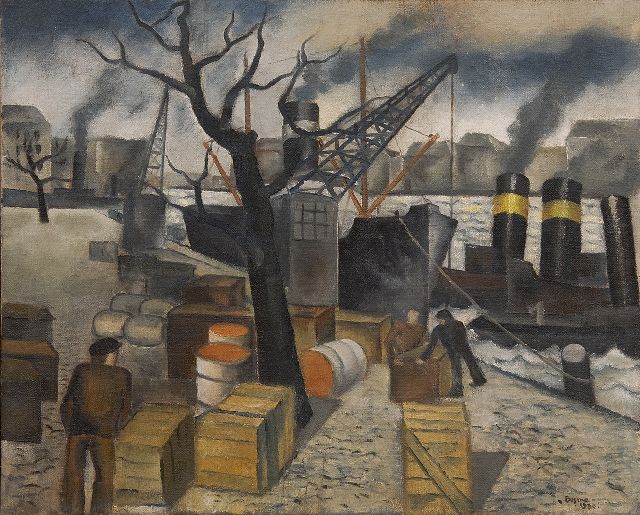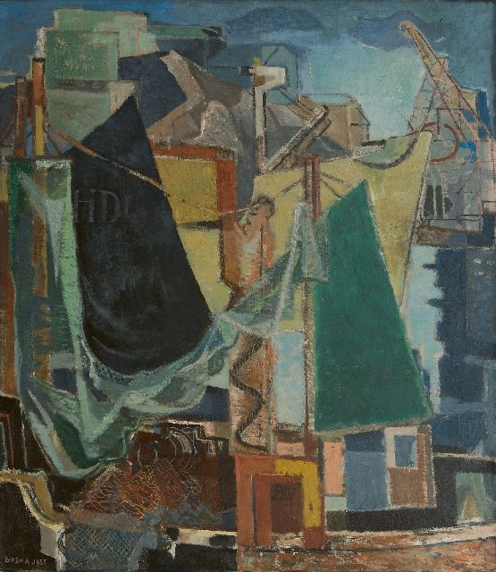 Wim Bosma voelde zich in de jaren 30 als schilder sterk aangetrokken tot de ‘wonderen' van de moderne techniek. Hij schilderde en aquarelleerde dan ook graag zaken als spoorwegviaducten, treinen, boten en vliegmachines in een nieuw-zakelijke, realistische stijl. Daarnaast laten zijn schilderijen invloed zien van het gematigde kubisme van André Lhote, waarbij de voorstelling bestaat uit lijnen en kleurvlakken die de vlakheid van het doek als het ware benadrukken. Na 1945 deden naast technische onderwerpen ook andere motieven hun intrede in zijn werk.