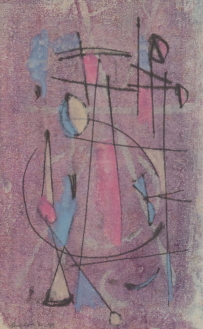 Wim Strijbosch studeerde aan het Instituut voor Kunstnijverheidsonderwijs in Amsterdam en kreeg daar les van Mart Stam en Mark Kolthoff, die hem aan het schilderen zetten. In 1951 werd de al abstract schilderende Strijbosch vermoedelijk via Anton Rooskens lid van Creatie. De kunstenaars uit deze groep verwierpen de zichtbare werkelijkheid als bron en kenden emotionele betekenis toe aan composities van lijn en kleur. Strijbosch was een veelzijdig kunstenaar; hij maakte naast zijn vrije werk decors en etalages voor De Bijenkorf, ontwierp affiches en catalogi voor musea en had diverse monumentale opdrachten. Vanaf de jaren 60 was hij ook docent en had hij vele bestuurlijke functies.
