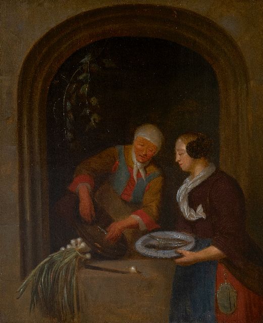 Noord-Nederlandse School, begin 18e eeuw | De haringverkoopster, olieverf op paneel, 49,2 x 41,7 cm
