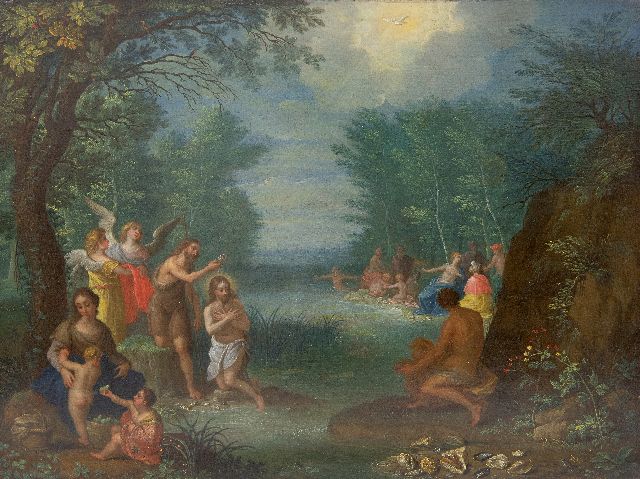 Jacob Andries Beschey | De doop van Christus in de Jordaan, olieverf op paneel, 24,3 x 31,9 cm