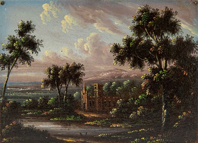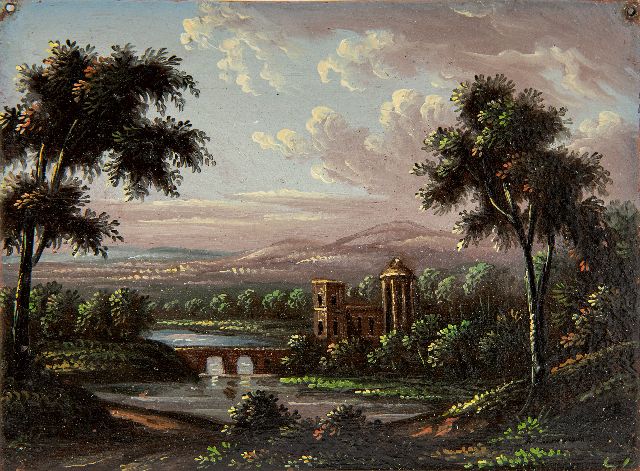 Italiaanse School, 18e eeuw | Italianiserend landschap, olieverf op koper, 7,0 x 9,0 cm