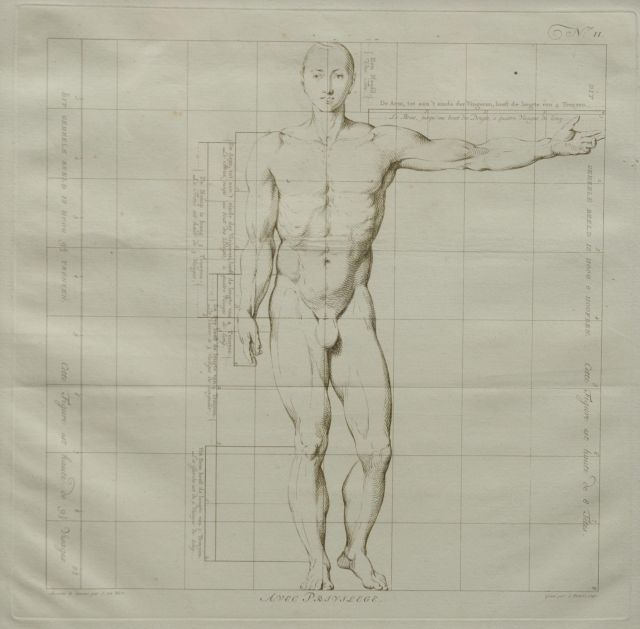 Jacob de Wit | De ideale proporties van het menselijk lichaam - Man (no.II), gravure op papier, 40,0 x 40,0 cm