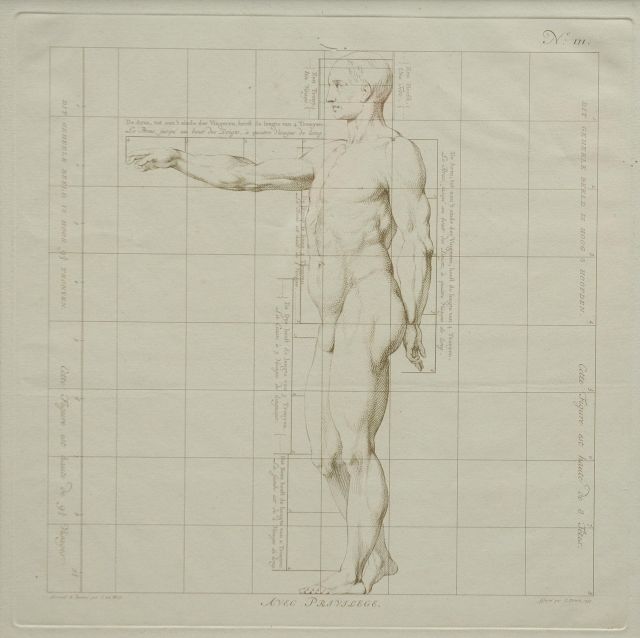 Jacob de Wit | De ideale proporties van het menselijk lichaam - Man (no.III), gravure op papier, 40,0 x 40,0 cm