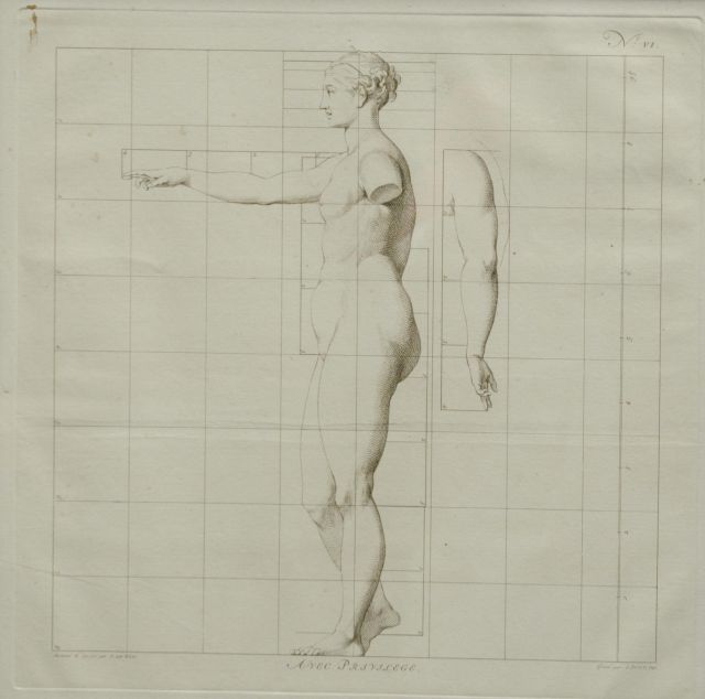 Jacob de Wit | De ideale proporties van het menselijk lichaam - Vrouw (no.VII), gravure op papier, 40,0 x 40,0 cm