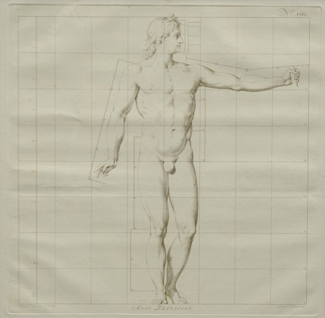Jacob de Wit | De ideale proporties van het menselijk lichaam - Man (no.VIII), gravure op papier, 40,0 x 40,0 cm